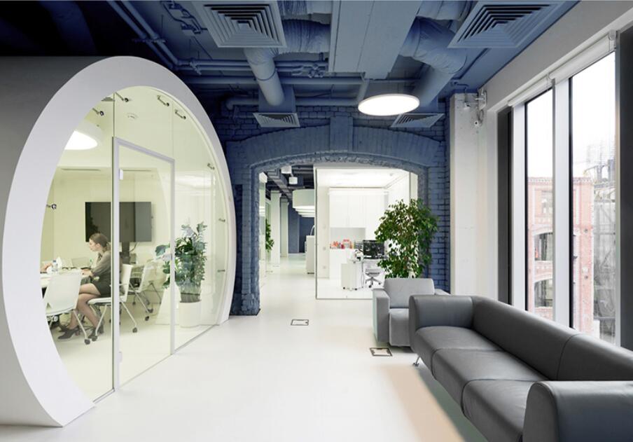 裸露的磚墻不加一絲的裝飾完全展現(xiàn)在人們的視野中,弧形的洽談室更是整個(gè)辦公區(qū)一道風(fēng)景線,洽談區(qū)主要是用于交流的,所以南寧工業(yè)風(fēng)辦公室設(shè)計(jì)一定要生動(dòng)自然一些,不要太過呆板。